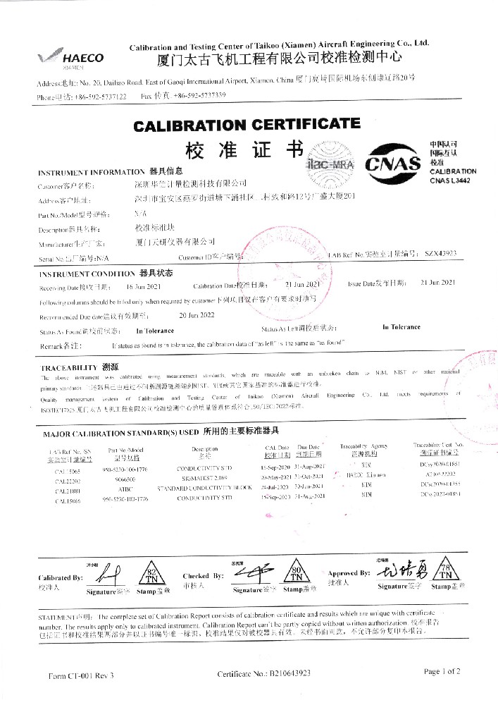 • 銅、鋁等金屬材料電導率值、電阻率值測量